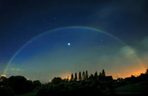 “Yeah, we can see it real good from up here on the porch.” And before he knew it, he said: “C’mon up!”And so the kids climbed the steps to the front porch of Tommy’s house where he stood with his mom. And they chattered on about how cool it was. And Tommy’s mom brought them each a cookie and some milk. And gave them blankets to share as they sat huddled together on the edge of the porch with Tommy smack in the middle of them all. And Tommy felt like he belonged to them and they belonged to him. Mary said, “I wonder what makes tonight so special that we get to see a moonbow.” And Tommy’s mom, who was the new science teacher, started telling them about water and light and how the moon is sometimes bright enough and at the right angle. And how the air sometimes has the right amount of moisture in it. And after they were done learning, they sat in silence for a while, watching as the moonbow started to fade just a bit. And Tommy thought about what Mr. Bartholomew had said,